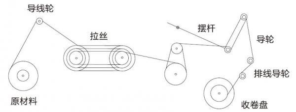 ·放線:拉絲機(jī)線材的放線過(guò)程,對(duì)于整個(gè)拉絲機(jī)環(huán)節(jié)來(lái)說(shuō),其控制沒(méi)有過(guò)高精度要求,雙變頻控制的拉絲機(jī)械,利用拉絲環(huán)節(jié)的絲線張力通圓盤(pán)拉伸,也就是通過(guò)后道工序拉絲的張力自動(dòng)放線。